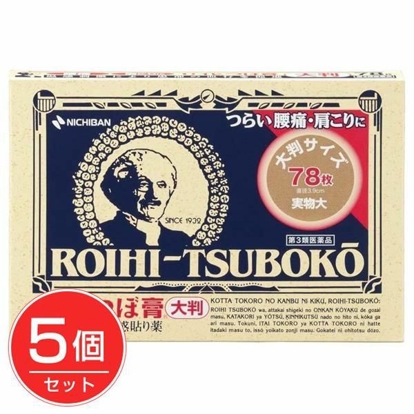 「ロイヒつぼ膏」は、有効成分(ノニル酸ワニリルアミド)の温感刺激により患部の血行をよくし、肩こりや腰痛の症状をやわらげる小型丸型の温感タイプはり薬です。一人でも貼りやすく、狙ったコリにピンポイントで効きます。