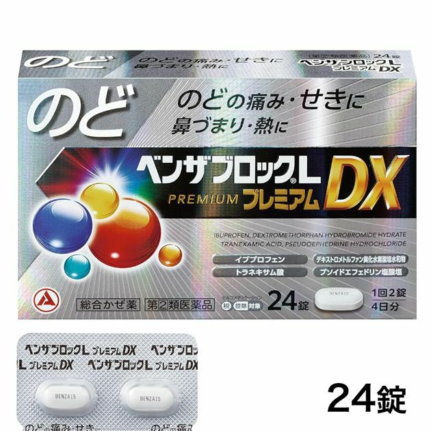 のどの痛み・せき・鼻づまり・熱に のどから始まるつらいかぜ症状を追求した処方 【指定第2類医薬品】 ベンザブロックLプレミアムDX錠 45錠 - アリナミン製薬 [セルフメディケーション税制対象] [風邪薬/のどの痛み] 販売価格 ¥ 2,090 税込 お気に入りに登録する