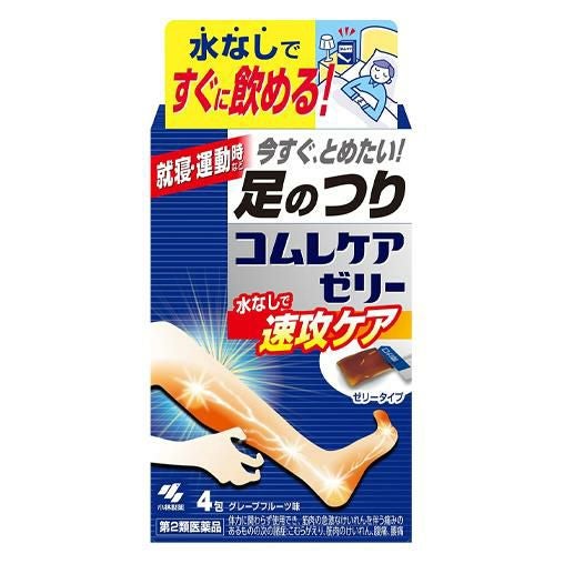 「小林製薬 コムレケアゼリー 4包」は、つらい足のつり(筋肉のけいれん)、こむらがえりを治すお薬です。漢方処方「芍薬甘草湯」が、筋肉の痛み・こわばりをしっかり鎮めます。運動時や就寝時など、足がつった時におすすめです。