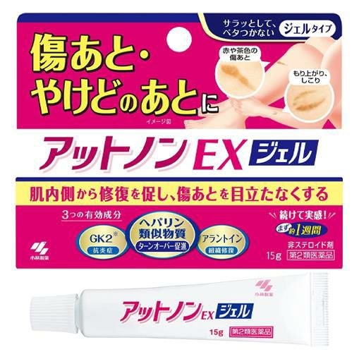 他の画像を見る 傷あと・やけどのあとに。肌の内側から修復して目立たなくする、サラッとしてベタつかないジェルタイプ 【第2類医薬品】 アットノンEXジェル 15g - 小林製薬 ※ネコポス対応商品 [手指の荒れ/角化症] 定価 ¥ 1,430 販売価格 ¥ 1,387 税込 ネコポス便対応品 「小林製薬 アットノンEXジェル 15g」は、有効成分ヘパリン類似物質が血行を促進して皮ふの新陳代謝を促し、皮ふの炎症を鎮め、角質に水分を保持することで傷あとを改善していきます。 詳細を見る お気に入りに登録する