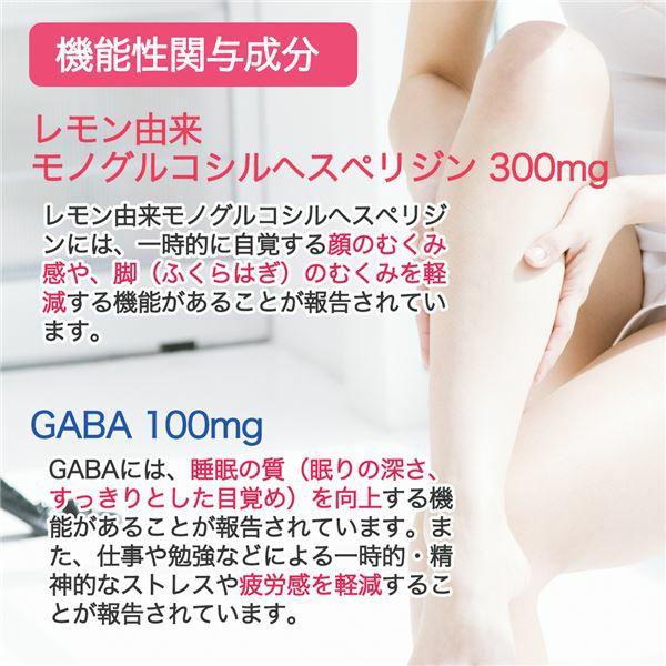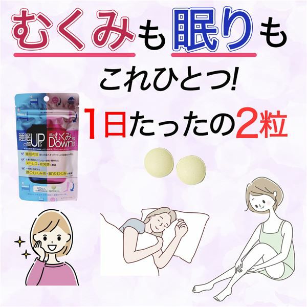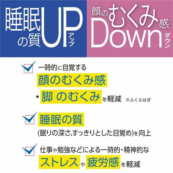 「睡眠の質アップ&顔のむくみ感ダウン 40粒 (20日分) [機能性表示食品]」は、顔や脚のむくみを一時的に軽減し、深い眠りをサポートする機能性表示食品です。