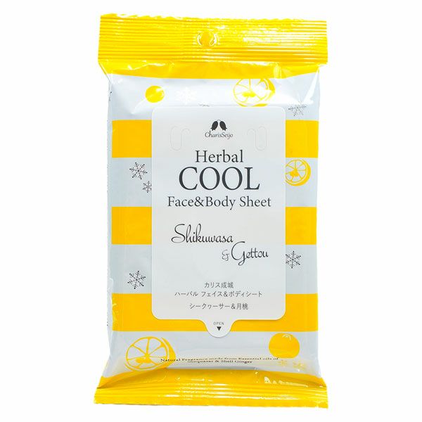 「ハーバルクールフェイス&ボディシート シークヮーサー&月桃 15枚入 (品番:1153)」は、沖縄産精油がジューシーに香る、顔にも使える ひんやりシートです。爽やかなシトラス系の香りと、リゾート感を連想させる沖縄産精油を配合。ジューシーな香りで、すっきりリラックス。12種の植物エキスと、6種の天然精油を配合。月桃とシークヮーサーが爽やかに香る、顔と身体、全身使える低刺激タイプ。