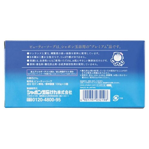 他の画像を見る ビューティーソープ 100g×3個入 - シャボン玉石けん 販売価格 ¥ 726 税込 在庫切れ 「ビューティーソープ 100g×3個入」は、香料、着色料、エデト酸塩(EDTA-4Na)などの酸化防止剤、合成界面活性剤を使用していない無添加石けんです。 再入荷お知らせ お気に入りに登録する