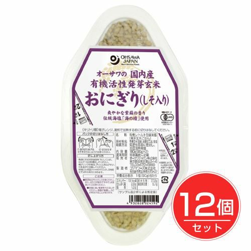 「オーサワの国内産有機活性発芽玄米おにぎり しそ入り 90g×2個」は、伝統海塩・海の精で味付けした、しそ入りの発芽玄米おにぎりです。温めるだけで手軽に食べられます。有機JAS認定品。 ★お得なまとめ買いセット