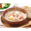 鶏肉(タイ産)、野菜(じゃがいも、にんじん)、油脂加工食品、乳等を主要原料とする食品、クリーム、デキストリン、ソテーオニオン(玉ねぎ、大豆油、バターオイル)、チーズ、チキンエキス、バター、小麦粉、クリームチーズ、水飴、砂糖、ラード、ガラスープパウダー、食塩、香味油、香辛料/トレハロース、増粘剤(加工でん粉)、調味料(アミノ酸等)、甘味料(ソルビット)、pH調整剤、香料、(一部に乳成分・小麦・牛肉・大豆・鶏肉・豚肉を含む)