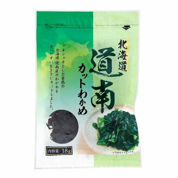 「ジャパンスパイス 北海道道南カットわかめ 18g」は、シャキシャキとした食感の北海道道南産のわかめを食べやすい大きさにカットしました。サラダ・酢の物、みそ汁・スープ等にお使いください。もどしたわかめはザル等にあけて十分に水分を取っておく、わかめ本来の風味やコシを損なわずにより美味しくお召し上がりいただけます。