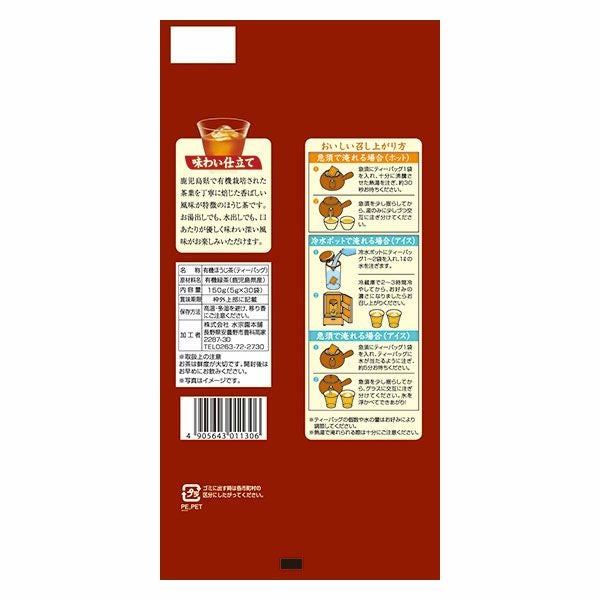 他の画像を見る 水宗園本舗 有機栽培ほうじ茶 5g×30包×10個セット 定価 ¥ 5,400 販売価格 ¥ 5,130 税込 送料無料 「水宗園本舗 有機栽培ほうじ茶 5g×30包」は、鹿児島県で有機栽培された茶葉を丁寧に焙じた香ばしい風味が特徴のほうじ茶です。 カートに入れる お気に入りに登録する