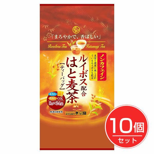他の画像を見る 水宗園本舗 ノンカフェイン ルイボス配合はと麦茶 8g×24包×10個セット 定価 ¥ 4,752 販売価格 ¥ 4,536 税込 送料無料 「水宗園本舗 ノンカフェイン ルイボス配合はと麦茶 8g×24包」は、美容と健康にうれしい生分を含むルイボスを、香ばしいはと麦茶にしました。 カートに入れる お気に入りに登録する
