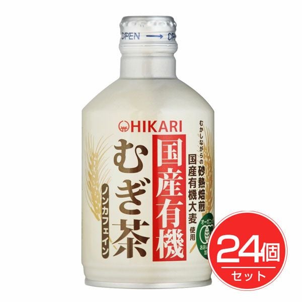 「ヒカリ 国産有機むぎ茶(缶) 275g×24個セット」は、国産有機大麦を100%使用し、昔ながらの砂熱焙煎で香ばしさと甘さを引き出した有機JAS認証のむぎ茶です。酸化防止剤(ビタミンC)は使用していません。ノンカフェインなので、お子様からお年寄り、妊婦・授乳中の方などカフェインが気になる方でも安心してお飲みいただけます。