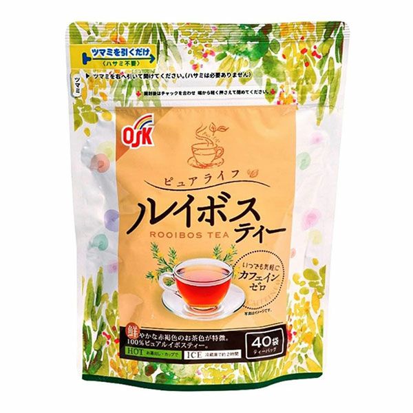 「小谷穀粉 ピュアライフルイボスティー 40袋」は、南アフリカ原産のアスパラサスリネアリス(学名)という植物から製造され、昔から健康茶として親しまれています。鮮やかな赤褐色で、やわらかな味わいのお茶に仕上げました。カフェインは含まれていないので、お子様からお年寄りまで安心してお飲みいただけます。