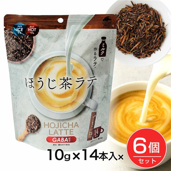 「ほうじ茶ラテ GABA配合 10g×14本」は、国産の香ばしい風味のほうじ茶と、ほうじ茶を引き立てる北海道産てんさい由来の甘みを合わせ、さらにスッキリとしたやさしい甘みの和三盆糖をブレンドしたほうじ茶ラテの素です。 こだわりのほうじ茶ラテの素に、リラックスタイムに摂って欲しいくつろぎ成分「GABA」を配合しました。 「ご自宅でのリラックスタイムに」「家事がひと段落した時に」「仕事の合間の気分転換に」など、ほっと一息つきたい時におすすめです。 ★お得な6個セット