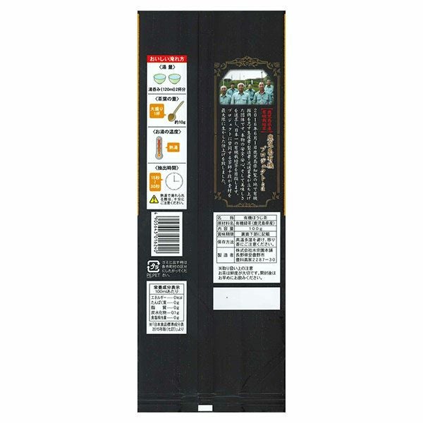 他の画像を見る 水宗園本舗 有機ほうじ茶 100g×10個セット 定価 ¥ 4,320 販売価格 ¥ 4,158 税込 送料無料 「水宗園本舗 有機ほうじ茶 100g」は、鹿児島県産の有機栽培原料を100%使用し、茶師十段が香り高くほんのりと甘みを感じるほうじ茶に仕上げました。 カートに入れる お気に入りに登録する