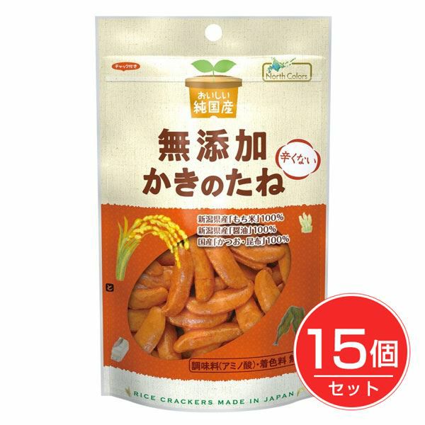 「ノースカラーズ 純国産かきのたね 53g」は、新潟県産もち米、新潟県産醤油、国産かつお・昆布を使用した辛くないかきのたねです。調味料(アミノ酸)、着色料無添加。醤油とだしのうまみ、そして粗糖がその二つの味をまろやかにまとめた味わい深い一品です。お子様はもちろん、お酒を飲む際のおつまみは体に良いものを選びたい方にもピッタリです。 ★お得なまとめ買いセット