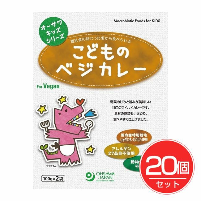 「オーサワ キッズシリーズ こどものベジカレー 100g×2袋」は、辛さを抑え、野菜本来の甘味と旨味をいかした甘口のマイルドカレーです。野菜の甘味と旨味がおいしい。アレルゲン25品目不使用。砂糖・添加物不使用。 ★お得なまとめ買いセット
