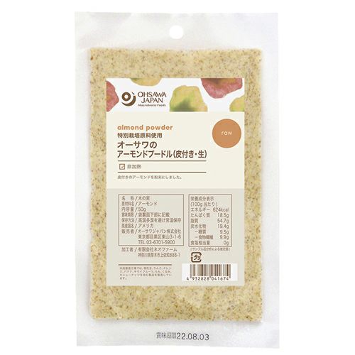 「オーサワのアーモンドプードル 皮付き・生 50g」は、皮つきのアーモンドを粉末にしました。パンや菓子の材料などにご使用ください。
