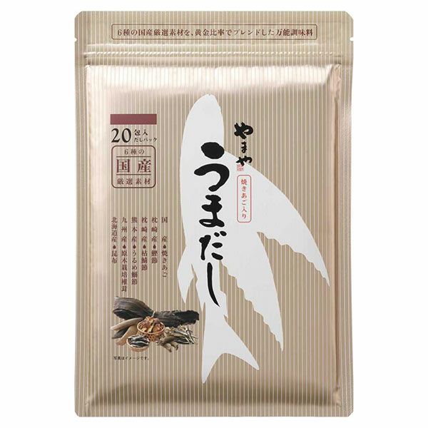「やまや 博多の幸 うまだし 20包」は、厳選した6種類の国産だし素材を黄金比でブレンドした、万能だしパックです。煮出せば簡単に本格だしがとれ、どんな料理もプロの味に仕上がります。