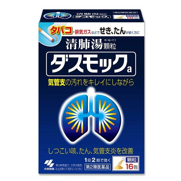 気管支の汚れをキレイにしながら、しつこい咳、たん、気管支炎を改善 【第2類医薬品】 ダスモックa 顆粒 8包 - 小林製薬 [清肺湯/セイハイトウ] 販売価格 ¥ 1,626 税込 お気に入りに登録する