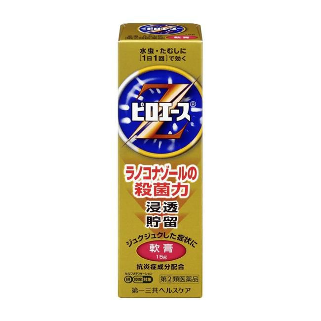 殺真菌成分「ラノコナゾール」配合。1日1回タイプ 【指定第2類医薬品】 ピロエースZ液 15ml - 第一三共ヘルスケア [セルフメディケーション税制対象] [みずむし/たむし] 販売価格 ¥ 2,079 税込 お気に入りに登録する
