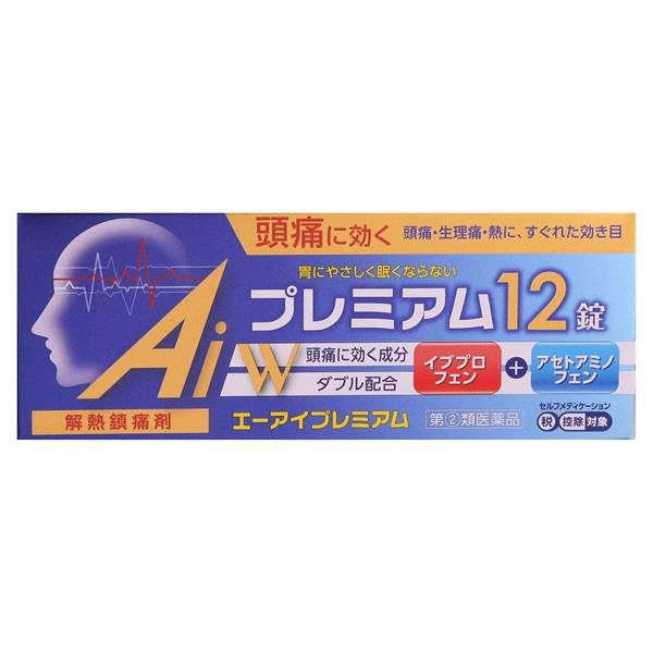「エーアイプレミアム」は、イブプロフェン、アセトアミノフェンともに、3錠(1回量)中に、最大量 各195mgを配合していますので、すぐに治したい頭痛などのつらい痛みに早く効果を発揮します。胃粘膜保護成分「合成ヒドロタルサイト」配合で胃にやさしく、眠くなる成分は含んでいません。