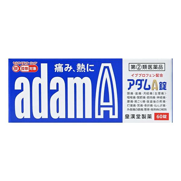 「アダムA錠 60錠」は、小粒でのみやすいフィルムコーティング錠で、吸収がよく効果が早く現れる解熱鎮痛剤です。主成分の「イブプロフェン」が痛みや熱の原因となる物質(プロスタグランジン)の生成を抑え、痛み・熱にすぐれた効果を発揮します。アリルイソプロピルアセチル尿素と無水カフェインを配合して、解熱鎮痛効果を高めました。頭痛・歯痛・生理痛や発熱などにすばやく、すぐれた効き目をあらわします。