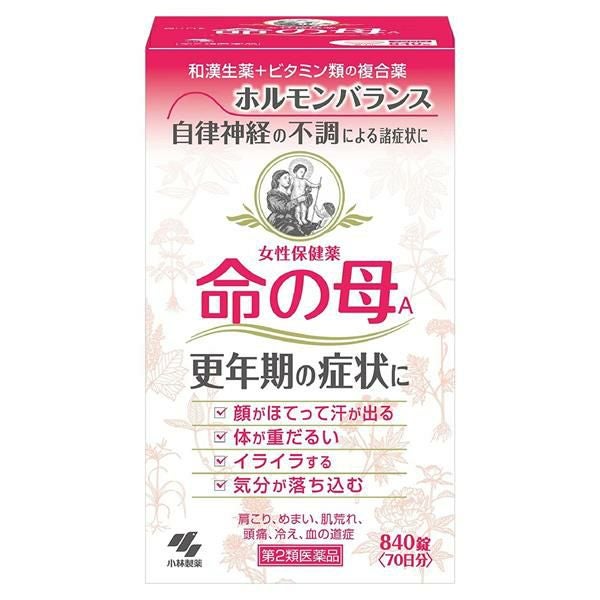 「命の母A 252錠」は、ホルモンバランスや自律神経の乱れからくる、「のぼせ」「気持ちの不安感」「イライラ」「重だるさ」「やる気がでない」「肩こり」「頭痛」など更年期の不調を改善。13種類の生薬に加え、ビタミン類やカルシウムも配合されています。