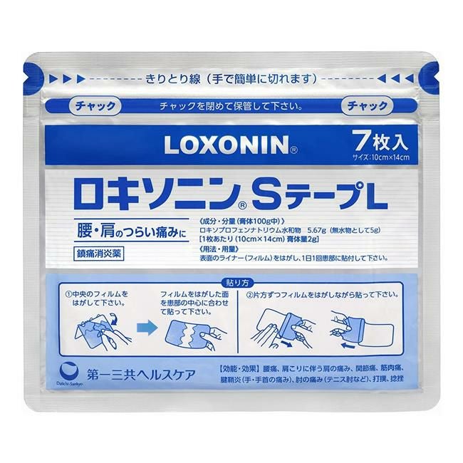 他の画像を見る つらい肩や腰の痛みに 【第2類医薬品】 ロキソニンSテープL 大判 7枚 - 第一三共ヘルスケア [セルフメディケーション税制対象] ※ネコポス対応商品 [腰痛/肩こり] 定価 ¥ 1,958 販売価格 ¥ 1,265 税込 送料無料 ネコポス便対応品 在庫切れ 「ロキソニンSテープL 7枚」は、すぐれた鎮痛消炎効果をもつ[ロキソプロフェンナトリウム水和物]を配合した、外用鎮痛消炎薬 です。 詳細を見る お気に入りに登録する