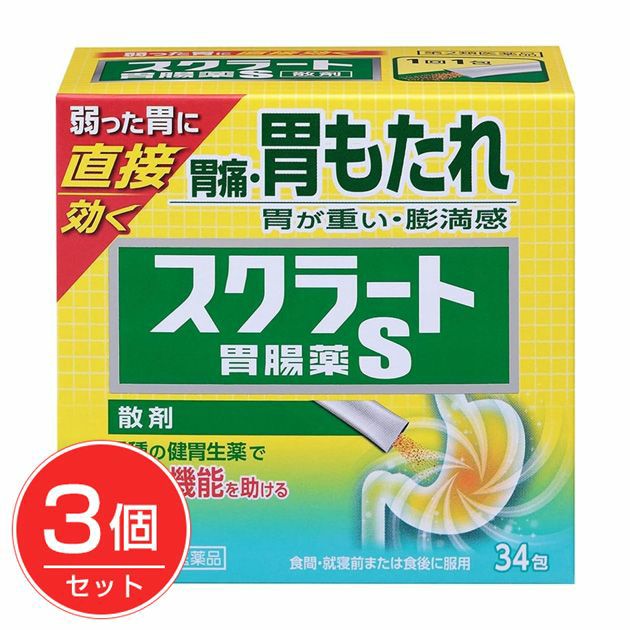 他の画像を見る 胃痛、胃もたれ、胃が重い症状に 【第2類医薬品】 スクラート胃腸薬S(散剤) 34包×3個セット - ライオン [胃痛/胃もたれ] 定価 ¥ 6,534 販売価格 ¥ 3,960 税込 会員価格あり 送料無料 在庫切れ 「スクラート胃腸薬S(散剤) 34包」は、弱って荒れた胃粘膜を直接修復するスクラルファートと、7種の健胃生薬配合した散剤タイプの胃腸薬です。 詳細を見る お気に入りに登録する