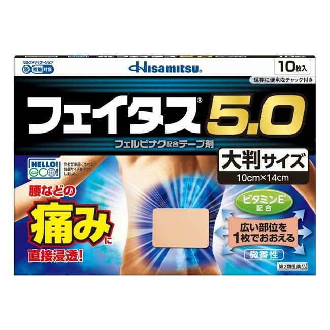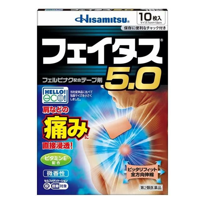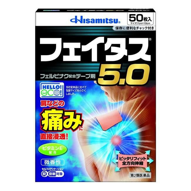 他の画像を見る 肩などのつらい痛みに 【第2類医薬品】 フェイタス5.0 50枚 - 久光製薬 [セルフメディケーション税制対象] [消炎鎮痛/関節痛] 販売価格 ¥ 3,792 税込 「フェイタス5.0 50枚」は、効きめ成分フェルビナクを5.0%配合した、経皮鎮痛消炎テープ剤。 詳細を見る お気に入りに登録する