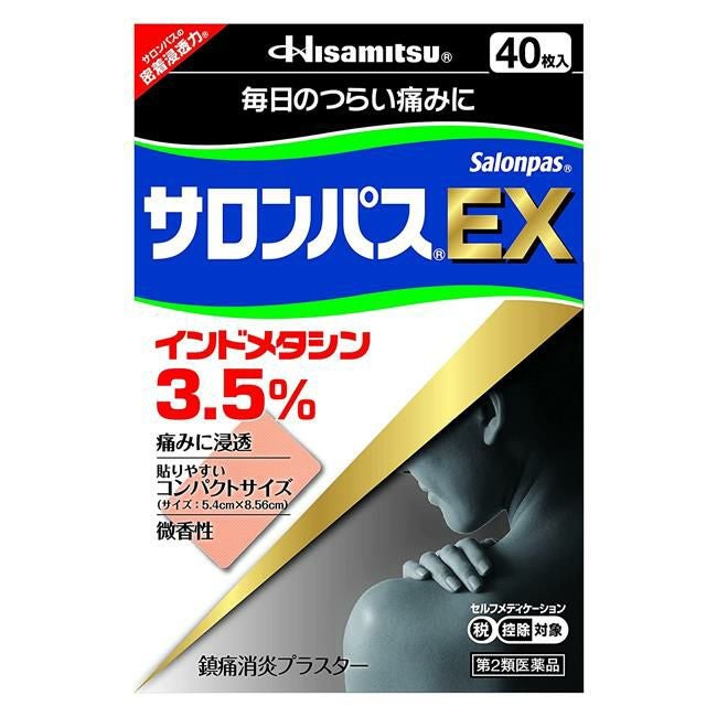 他の画像を見る 毎日のつらい痛みに 【第2類医薬品】 サロンパスEX 40枚 - 久光製薬 [セルフメディケーション税制対象] [鎮痛消炎/肩こり] 定価 ¥ 1,947 販売価格 ¥ 1,849 税込 「サロンパスEX 40枚」は、インドメタシン3.5%配合で優れた鎮痛消炎効果があります。 詳細を見る お気に入りに登録する