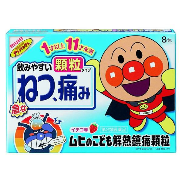 他の画像を見る 「1才からつかえる」顆粒タイプの解熱鎮痛内服薬 【第2類医薬品】 ムヒのこども解熱鎮痛顆粒 8包 - 池田模範堂 [セルフメディケーション税制対象] ※ネコポス対応商品 [解熱鎮痛/アンパンマン] 定価 ¥ 1,100 販売価格 ¥ 1,067 税込 ネコポス便対応品 「ムヒのこども解熱鎮痛顆粒」は、1才から服用できる顆粒タイプで、錠剤が苦手なお子さまにもおすすめです。 詳細を見る お気に入りに登録する