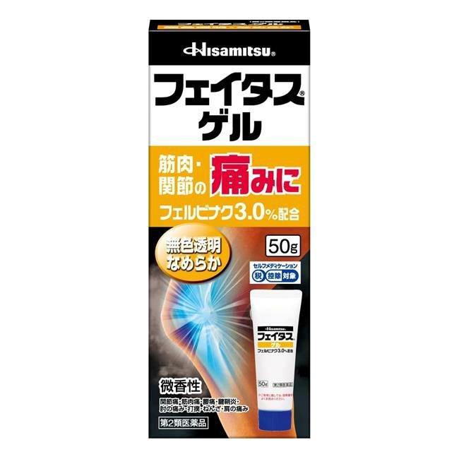他の画像を見る 筋肉・関節の痛みに 【第2類医薬品】 フェイタスゲル 50g - 久光製薬 [セルフメディケーション税制対象] [抗炎症/鎮痛] 定価 ¥ 1,732 販売価格 ¥ 1,645 税込 「フェイタスゲル 50g」は、優れた抗炎症・鎮痛効果が認められている「フェルビナク」を主成分(3%配合)とした経皮鎮痛消炎剤です。 詳細を見る お気に入りに登録する