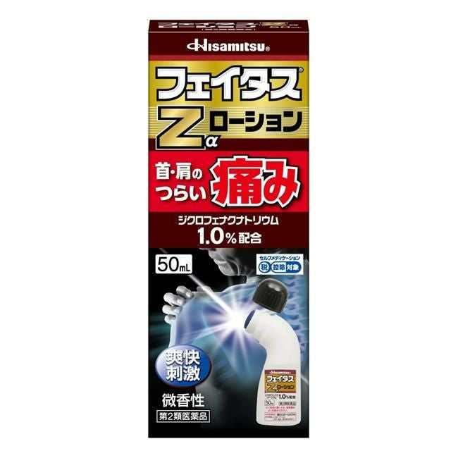 他の画像を見る 首・肩のつらい痛みに 【第2類医薬品】 フェイタスZαローション 50ml - 久光製薬 [セルフメディケーション税制対象] [抗炎症/鎮痛] 販売価格 ¥ 2,159 税込 「フェイタスZαローション 50ml」は、効きめ成分ジクロフェナクナトリウムが、肩や腰、関節等のつらい痛みに優れた効きめをあらわします。 詳細を見る お気に入りに登録する