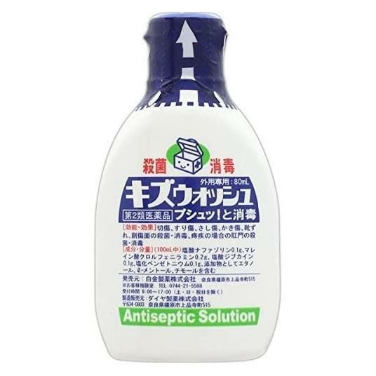 他の画像を見る プシュッと殺菌・消毒 【第2類医薬品】 キズウォッシュ 80ml - 白金製薬 [キズの消毒/殺菌] 販売価格 ¥ 330 税込 「キズウォッシュ」は、しっかりと患部を消毒できるスプレー式の外皮用殺菌消毒薬です。 詳細を見る お気に入りに登録する