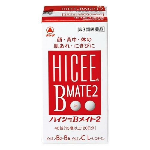 「アリナミン製薬 ハイシーBメイト2 40錠」は、肌あれ・にきびにすぐれた効果を発揮するビタミンB2・B6製剤です。1日1回、1回2錠(15歳以上)、のみやすい白い錠剤です。シュガーレスです。