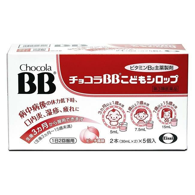 3ヵ月以上のお子様の病中病後の体力低下時、口内炎、湿疹、疲れに。 【第3類医薬品】 チョコラBBこどもシロップ 30ml×2本 - エーザイ [お子さまの口内炎/湿疹] 販売価格 ¥ 814 税込 お気に入りに登録する