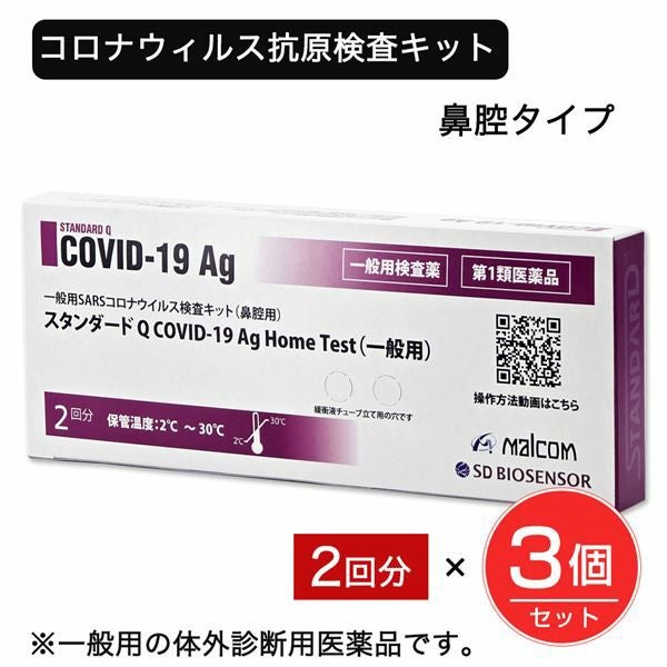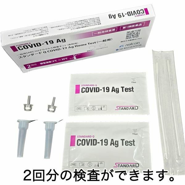 他の画像を見る [2回分×6個]鼻腔用の新型コロナウイルス抗原検査キット 【第1類医薬品】 SARSコロナウイルス抗原検査キット スタンダードQ COVID-19 Ag 2回分×6個セット (12回分) - マルコム ※使用期限2027年3月8日まで [新型コロナウイルス検査/鼻腔用] 定価 ¥ 11,880 販売価格 ¥ 10,692 税込 会員価格あり 送料無料 「SARSコロナウイルス抗原検査キット スタンダードQ COVID-19 Ag 2回分」は、鼻腔用の新型コロナウイルス(SARS-CoV-2)抗原検査簡易キットです。 詳細を見る お気に入りに登録する