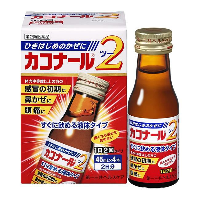 他の画像を見る かぜのひきはじめに。 【第2類医薬品】 カコナール2 45mL×2本入 - 第一三共ヘルスケア [セルフメディケーション税制対象] [葛根湯/風邪] 定価 ¥ 1,078 販売価格 ¥ 935 税込 在庫切れ 「カコナール2 45mL×2本入」は、ひきはじめのかぜに1日2回の服用でよく効きます。 詳細を見る お気に入りに登録する