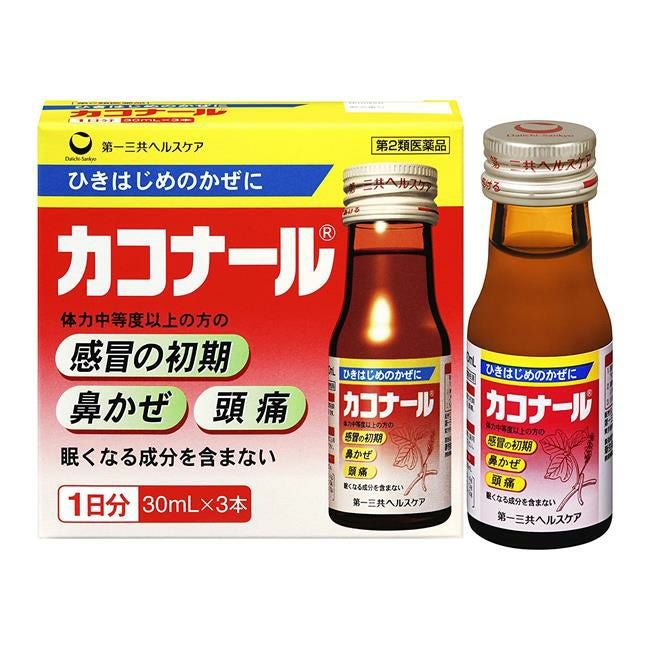 他の画像を見る かぜのひきはじめに効く液体葛根湯 【第2類医薬品】 カコナール 30ml×3本 - 第一三共ヘルスケア [セルフメディケーション税制対象] [かぜの初期/鼻かぜ] 定価 ¥ 1,078 販売価格 ¥ 970 税込 「カコナール 30ml×3本」は、ひきはじめのかぜによく使われる葛根湯の内服液。 詳細を見る お気に入りに登録する
