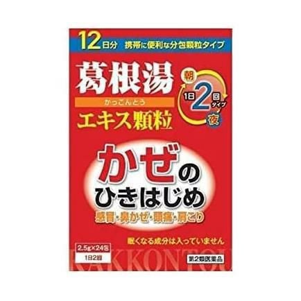 他の画像を見る かぜのひきはじめに 【第2類医薬品】 葛根湯エキス顆粒 24包 - 本草製薬 [セルフメディケーション税制対象] [カッコントウ/かぜ薬] 定価 ¥ 4,290 販売価格 ¥ 2,200 税込 在庫切れ 「本草葛根湯エキス顆粒-H」は、漢方処方「葛根湯」を煎じて服用する不便をなくし、簡便に服用出来るエキス顆粒(分包)です。 詳細を見る お気に入りに登録する