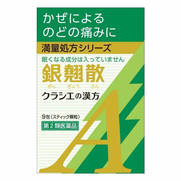 他の画像を見る のどの痛みを伴う、かぜの初期に 【第2類医薬品】 クラシエの漢方 銀翹散エキス顆粒Aクラシエ 9包 - クラシエ薬品 ※ネコポス対応商品 [ギンギョウサン/かぜの初期] 定価 ¥ 2,178 販売価格 ¥ 1,056 税込 送料無料 ネコポス便対応品 「クラシエの漢方 銀翹散エキス顆粒」は、かぜのひきはじめで、体力中等度以上の方に用いられる漢方薬です。 詳細を見る お気に入りに登録する