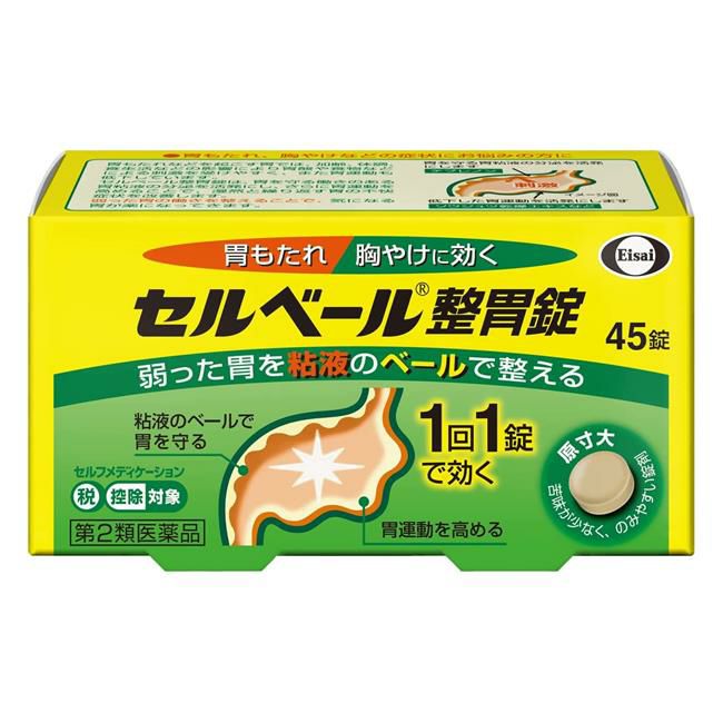 他の画像を見る 胃もたれ、胸やけに、弱った胃を粘液のベールで整える胃ぐすり 【第2類医薬品】 セルベール整胃錠 45錠 - エーザイ [セルフメディケーション税制対象] [胃もたれ/胸やけ] 定価 ¥ 2,178 販売価格 ¥ 2,069 税込 会員価格あり 「セルベール整胃錠 45錠」は、胃酸などの刺激から胃の粘膜を守る「胃粘液」を増やし、さらに胃の運動を活発にして弱った胃の状態を正常に整えます。 詳細を見る お気に入りに登録する