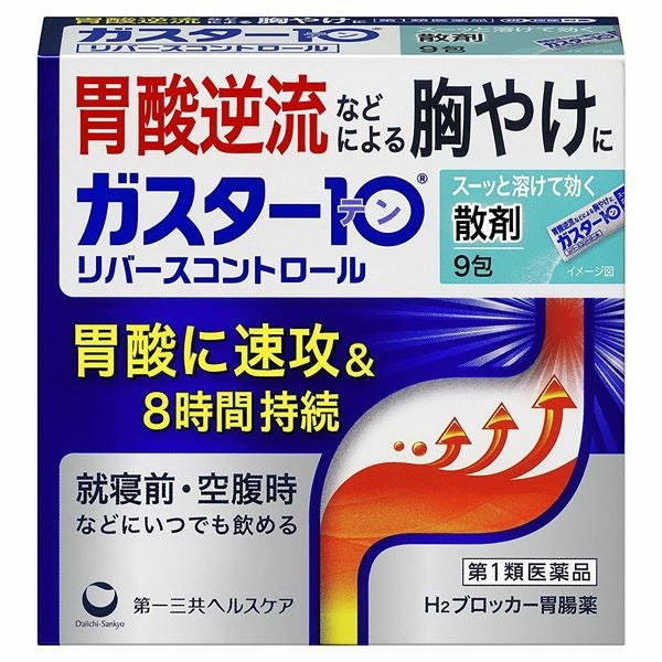 胃酸逆流などによる胸やけに 【第1類医薬品】 ガスター10散剤 リバースコントロール9包 - 第一三共ヘルスケア [セルフメディケーション税制対象] [胃酸の逆流/むかつき]