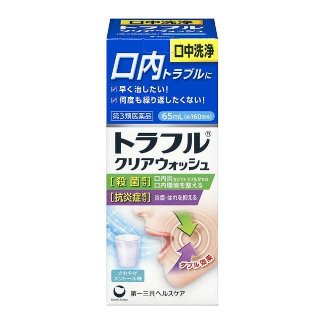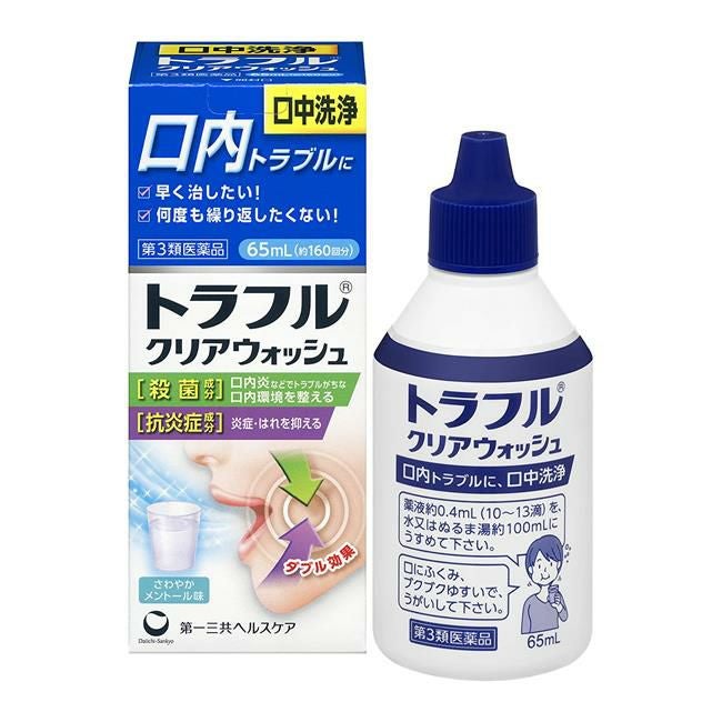 他の画像を見る 口内トラブルを何度も繰り返す方のための口中洗浄液 【第3類医薬品】 トラフルクリアウォッシュ 65ml - 第一三共ヘルスケア [含嗽薬/のどの殺菌] 定価 ¥ 1,210 販売価格 ¥ 1,089 税込 「トラフルクリアウォッシュ 65ml」は、口内トラブルを早く治したい方や、何度も繰り返す方のデイリーケアを考えた口中洗浄液です。 詳細を見る お気に入りに登録する
