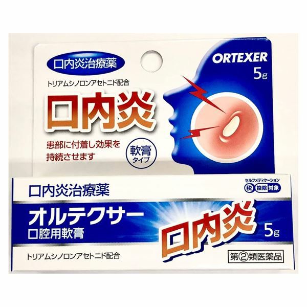 他の画像を見る 患部に貼りつく口内炎治療薬 【指定第2類医薬品】 オルテクサー口腔用軟膏 5g - 福地製薬 [セルフメディケーション税制対象] ※ネコポス対応商品 [口内炎/アフタ性] 定価 ¥ 1,045 販売価格 ¥ 855 税込 ネコポス便対応品 「オルテクサー口腔用軟膏」は、口腔粘膜への優れた付着力があり、患部を保護するとともに、ステロイド成分のトリアムシノロンの抗炎症作用により患部の炎症を抑え、口内炎やそれにともなう痛みなどを改善します。 詳細を見る お気に入りに登録する