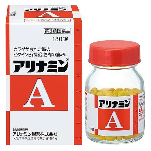 「アリナミン製薬 アリナミンA 180錠」は、吸収にすぐれたビタミンB1誘導体フルスルチアミンを配合し、毎日の生活の中で感じる、カラダが「だるい」「重い」といった疲れにすぐれた効果をあらわします。補酵素(コエンザイムA)となってエネルギーの産生に重要な働きをするパントテン酸カルシウムとフルスルチアミン、ビタミンB2、ビタミンB6を配合し、三大栄養素(脂質、タンパク質、糖質)を効率よくエネルギーに変える助けをするので、疲れたカラダにすぐれた効果をあらわします。服用しやすい黄色の糖衣錠です。
