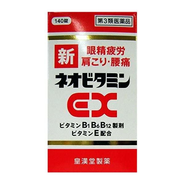 他の画像を見る 眼精疲労・肩こり・腰痛に 【第3類医薬品】 新ネオビタミンEXクニヒロ 140錠 - 皇漢堂製薬 ※ネコポス対応商品 [疲れ/眼精疲労] 定価 ¥ 5,280 販売価格 ¥ 3,080 税込 ネコポス便対応品 「新ネオビタミンEXクニヒロ 140錠」は、ビタミンB1誘導体であるフルスルチアミン塩酸塩、B6、B12のビタミンB群に、ビタミンE、パントテン酸カルシウム、ガンマ-オリザノールを配合した服用しやすい糖衣錠です。 詳細を見る お気に入りに登録する