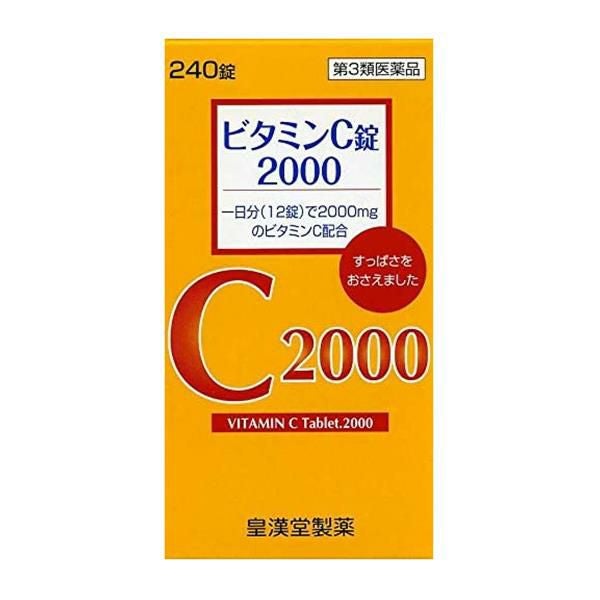 「ビタミンC錠2000クニキチ 240錠」は、1日量12錠中にビタミンCを2000mg配合しています。ビタミンCのナトリウム塩を配合して、ビタミンCの酸味を和らげ、胃に対する負担を軽く(胃に優しく)しています。ビタミンB2を配合し、ビタミンCの働きをより効果的にしています。味が良く、水でも、なめてもかんでも服用できます。5歳のお子様からご使用いただけます。