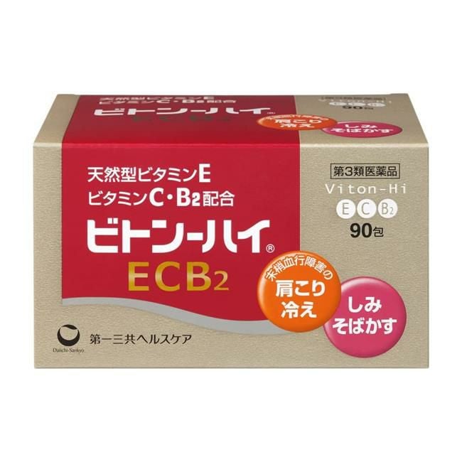 末梢血行障害による肩・首すじのこり、手足のしびれ・冷え、しみ、そばかすに。ビタミンC 1,000mg配合 【第3類医薬品】 ビトン-ハイECB2 90包 - 第一三共ヘルスケア [ビタミンEC/しみ]
