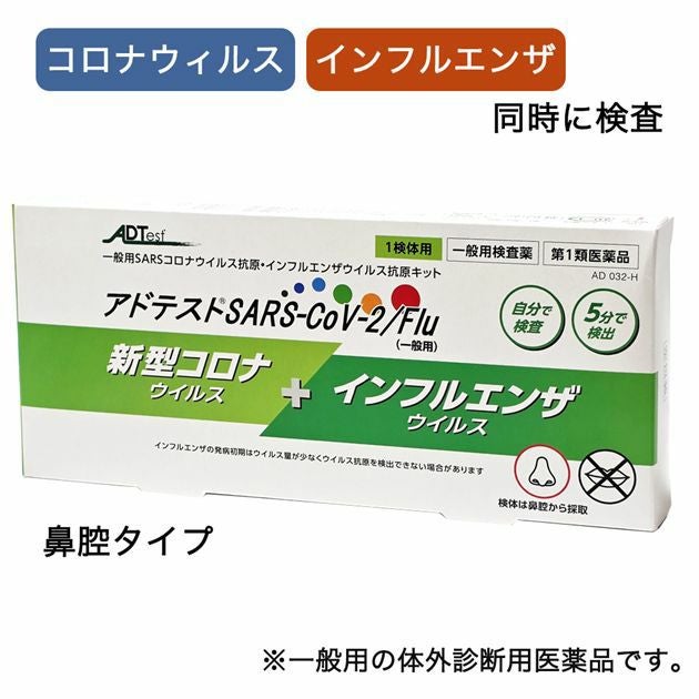 コロナウイルスとインフルエンザウイルスを同時に検査できる、抗原検査キット 【第1類医薬品】 新型コロナウイルス+インフルエンザウイルス抗原検査キット アドテストSARS-CoV-2/Flu(一般用) 1回分 - シオノギヘルスケア [インフルエンザ コロナ 検査キット/同時検査]