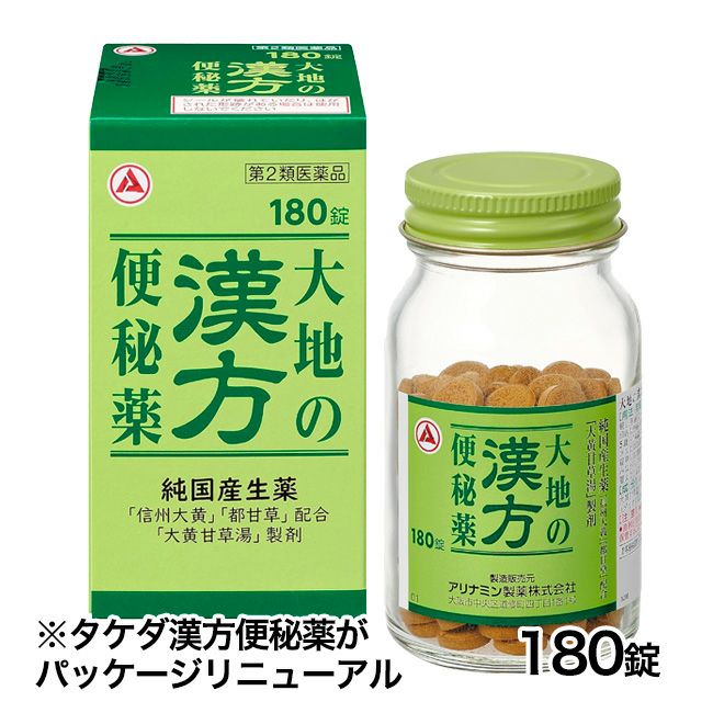 他の画像を見る 自然に近いお通じをお求めの方に 【第2類医薬品】 大地の漢方便秘薬 120錠 - アリナミン製薬 [腹部膨満/吹出物] 定価 ¥ 2,618 販売価格 ¥ 2,369 税込 送料無料 「大地の漢方便秘薬 120錠」は、生薬の「大黄」と「甘草」を配合した漢方処方「大黄甘草湯」の便秘薬で、大腸がもともと持っているぜん動運動を促し、自然に近いお通じを実現します。 詳細を見る お気に入りに登録する
